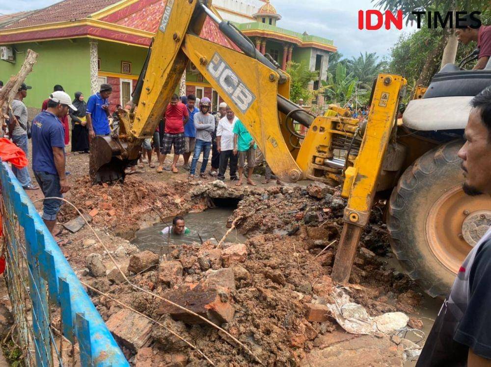 “Keluarga korban langsung terjun ke dalam parit saat arus sedang kuat karena air lagi pasang,” jelasnya.